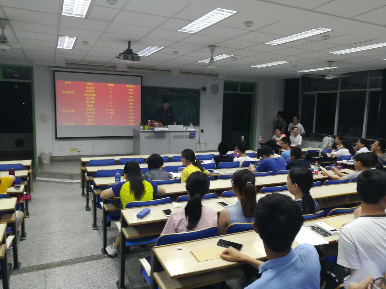 5月17号20:00分,拍卖会正式开始,在场的同学们给予生活部部长袁金鹏的开场词致以掌声。随后主持人赵博先介绍了拍卖会会规则以及需要注意的事项,然后,拍卖正式开始,此次拍卖会的拍品包括篮球、乒乓球、握力器、书籍、绿植等健康生活的物品。