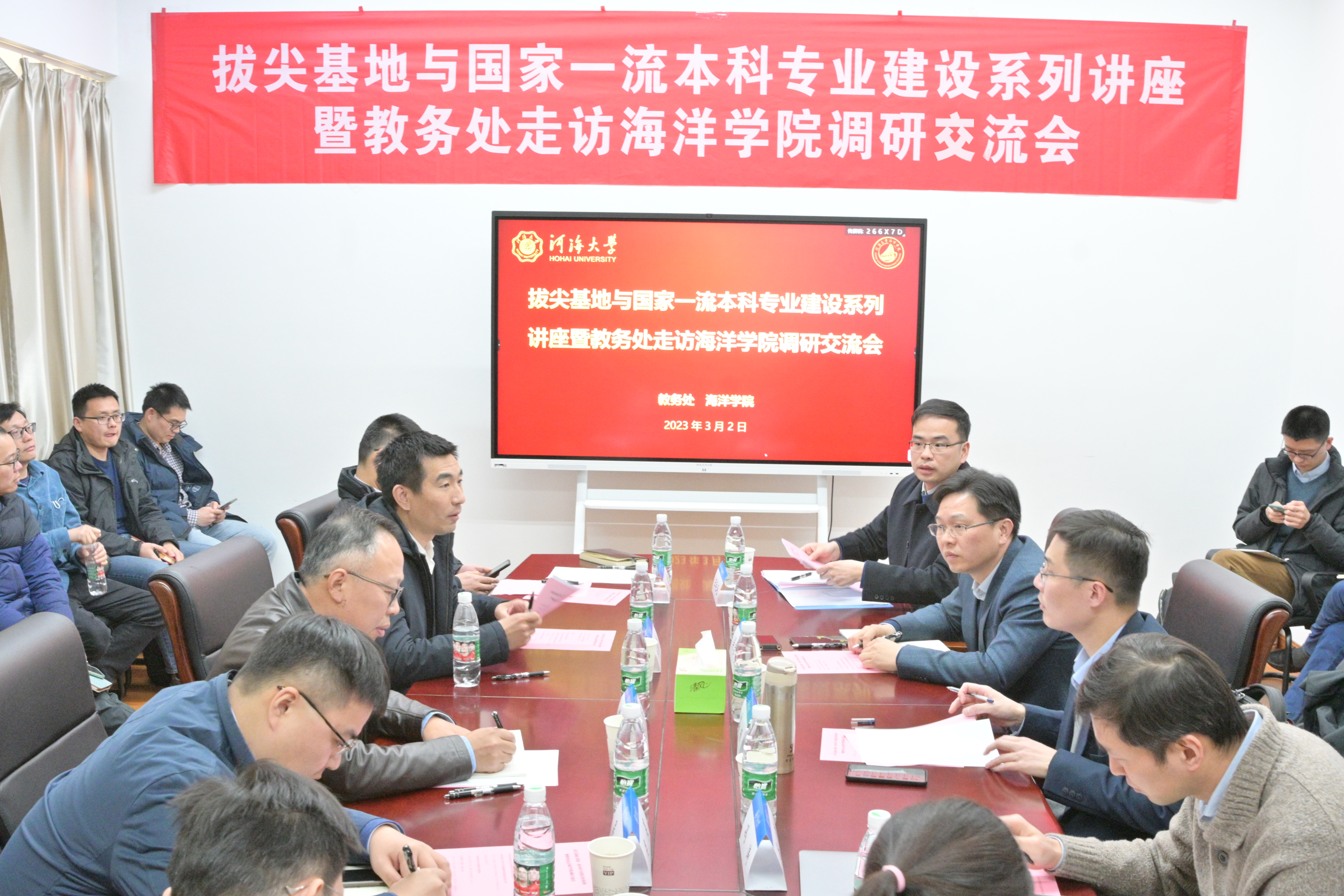 教务处副处长吴志勇教授代表教务处讲话,他高度肯定了直播平台 近年来在专业建设、课程建设、师资队伍、继续深造率等方面取得的出色成绩,并对直播平台老师为本科教学的辛苦付出表示衷心感谢。他希望以本次走访调研为契机,进一步加强与直播平台的沟通与协作,助力海洋科学省级拔尖人才培养基地建设,共同促进本科教学质量的持续提高。