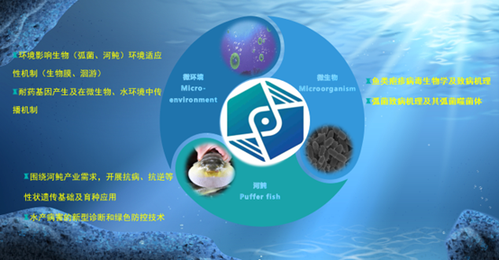 近5年来带领团队围绕江苏近海及长江中下游特色鱼类—暗纹东方鲀(俗称河豚),利用现代分子生物学和生物技术等手段,聚焦河豚生殖发育、抗病免疫、环境适应和病害防控等重大科学与产业中所关注的技术难题,开展基础和应用基础研究。具体研究方向有1)河豚遗传育种及水产病害;2)海洋微生物环境适应性机制;3)海洋生物资源利用、生物制品研发。