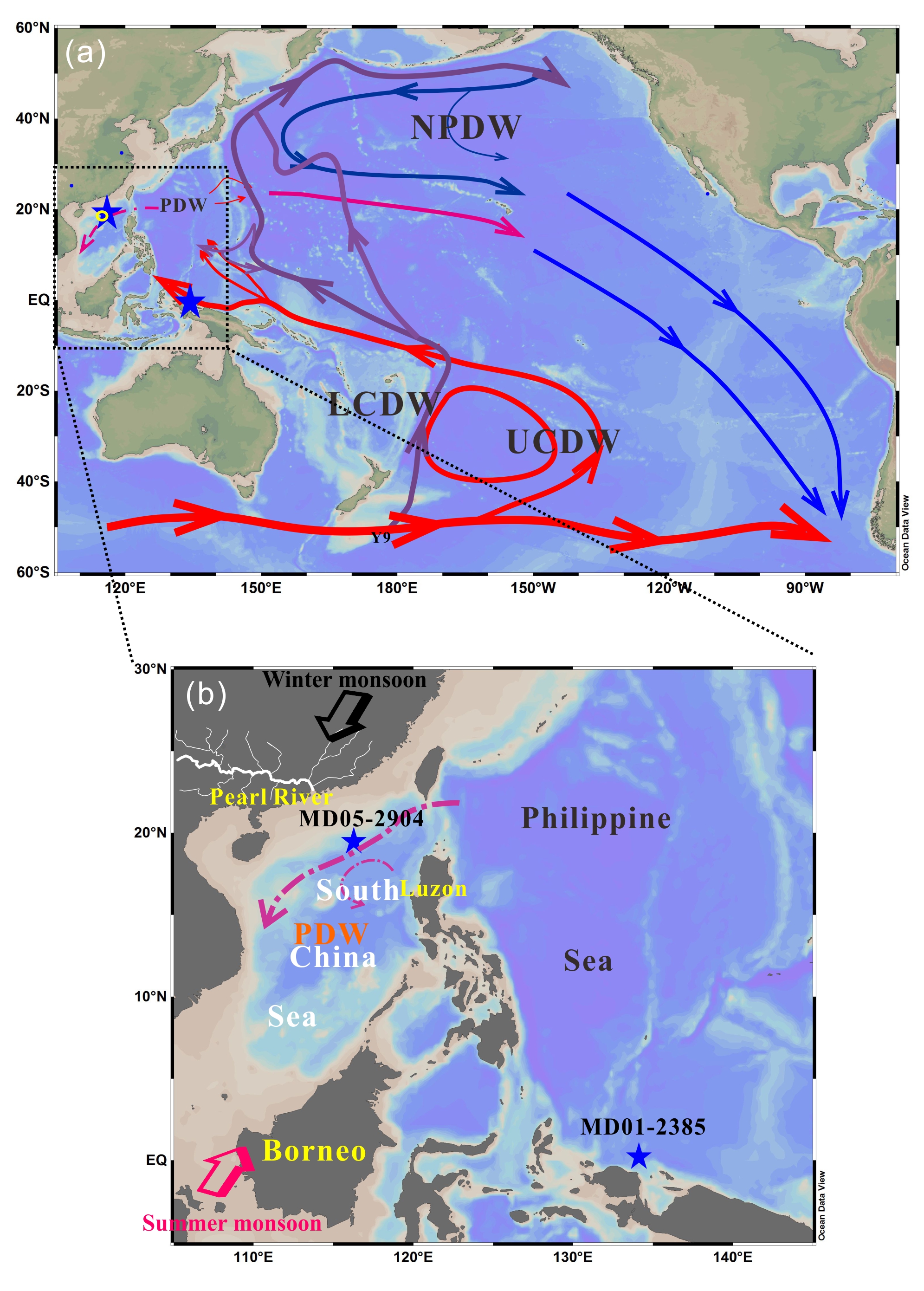 在海平面发生变化的时候,海洋深处又发生了怎样的变化呢?太平洋是地球第一大洋,也是全球重要的碳储库之一,太平洋环流对于调节全球气候变化具有重要意义。现代观测表明,当今西太平洋深层水的主要来源是环南极深层水,由环南极深层水在北太平洋上翻形成的北太平洋深层水对西太平洋深层水影响较小?西太平洋现代环流格局在冰期时是否会发生变化,又会发生怎样的变化呢?